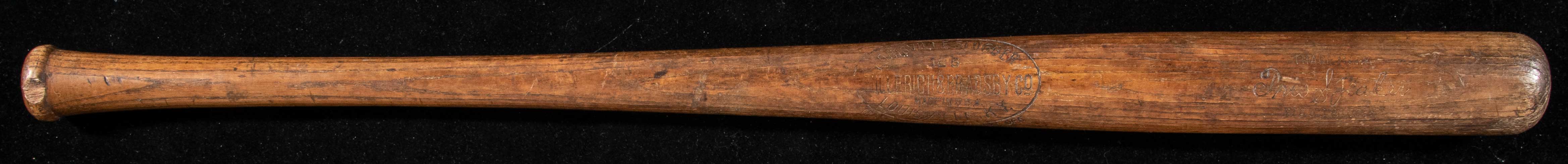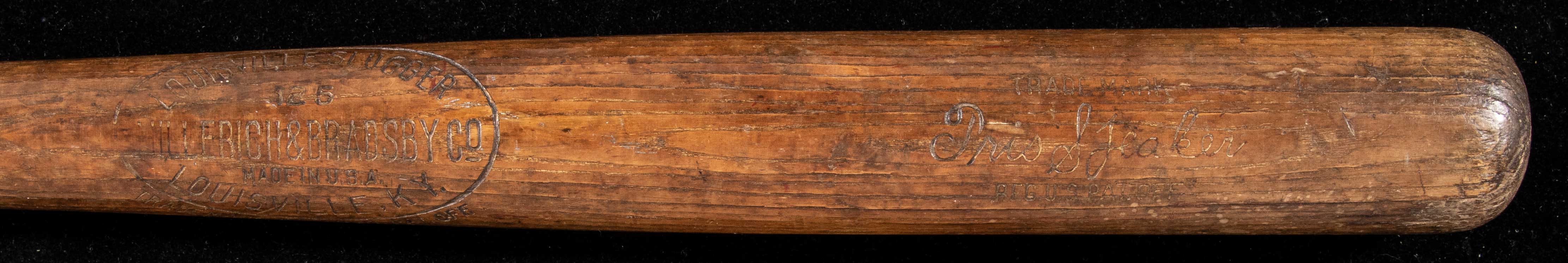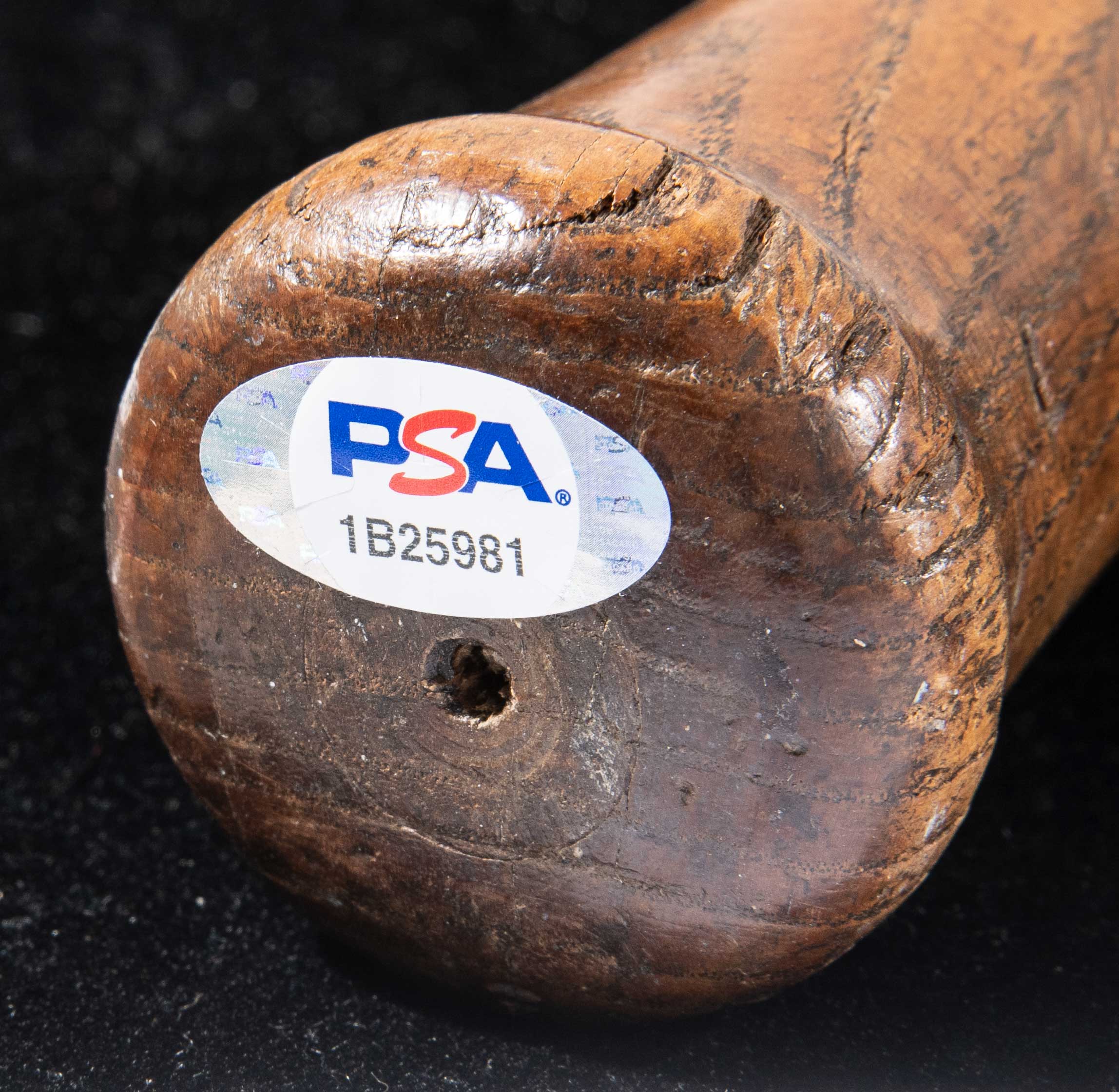 Description:Tris Speaker professional model baseball bat c.1922-25 (PSA "GU 8"). Louisville Slugger 125 model bat with Speaker facsimile signature in the barrel measures 35" long and weighs 43.9oz. Uncracked with outstanding use including ball marks which cover the hitting surface and grain swelling due to repeated contact. A small chip in the knob is noted for accuracy. One of the greatest players in the history of baseball, Speaker ranks 6th All-Time in average (.345), 5th All-Time in hits (3,514), and still hold the records for doubles (792). His prowess in the field was no less impressive. In a career which spanned (3) decades he played on a trio of World Series Championship teams. During the labeling period in which this bat was produced he was with the Cleveland Indians with whom (over an 11 year stretch) he hit (.350). Speaker bats are notably rare with a total of just (17) examples that appear in the PSA database. Of those only (7) have been graded (8) or higher. Includes LOAs from Hunt Auctions and PSA/DNA (graded "GU 8"): EX