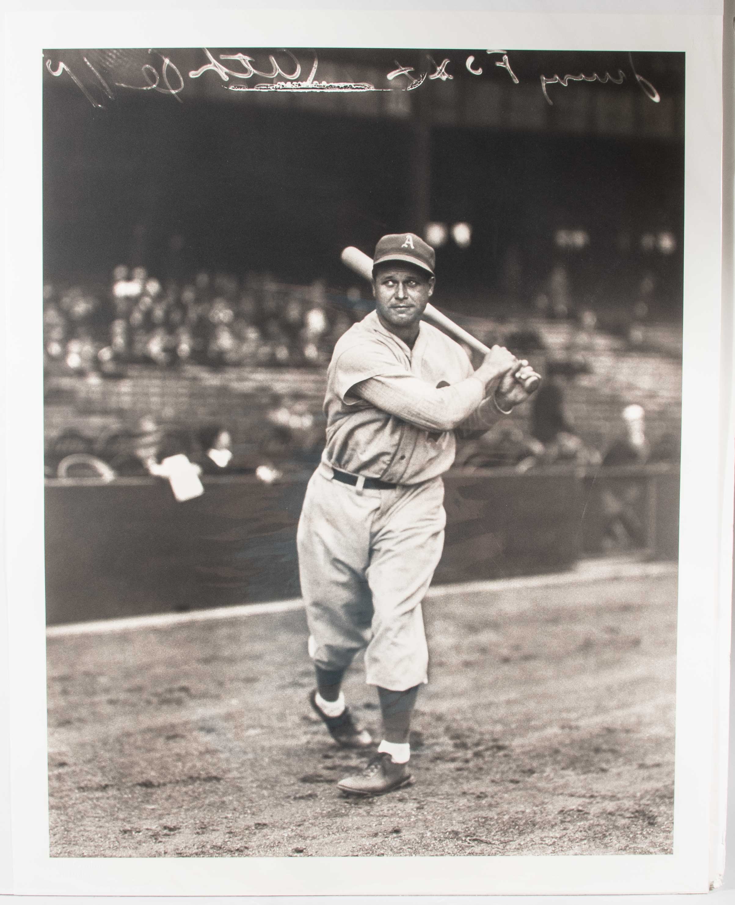 Description:Jimmie Foxx large format photographic print from Conlon negative. Modern print on 30"x40" heavy stock offers exceptional clarity and was done off the original negative taken by Charles M. Conlon. A raised "Conlon Portfolio" mark appears at lower left: NM