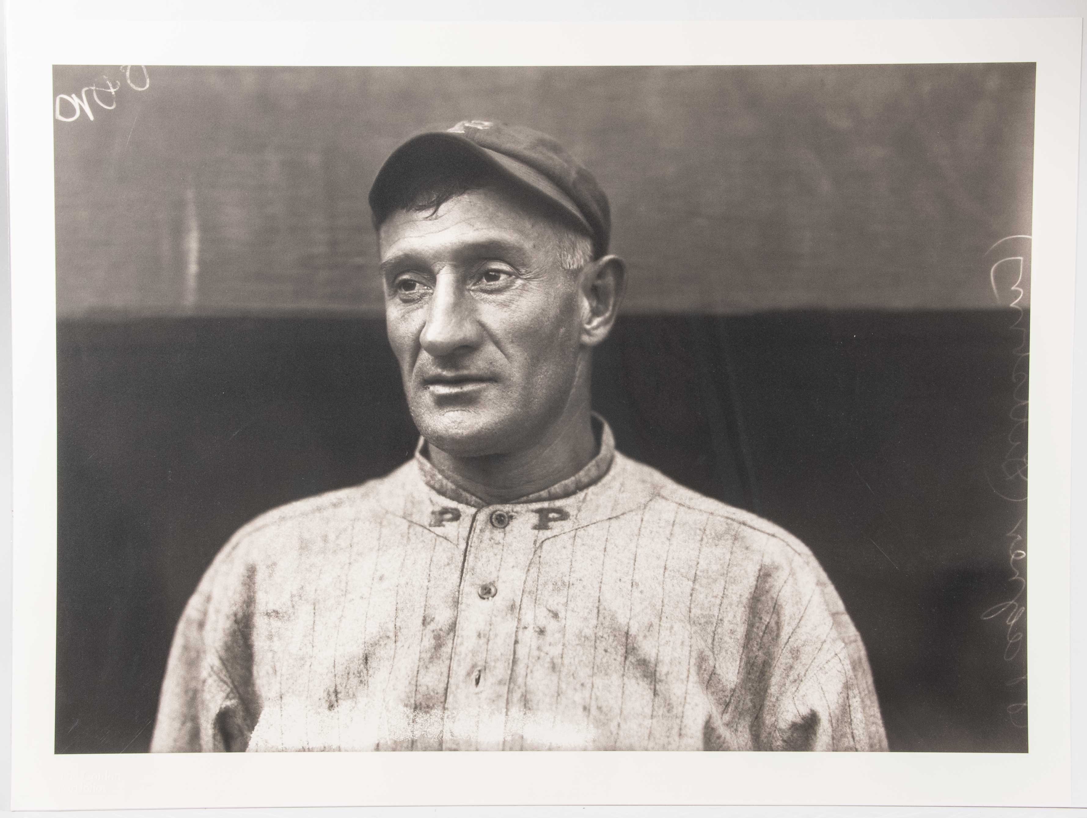 Description:Honus Wagner large format photographic print from Conlon negative. Modern print on 30"x40" heavy stock offers exceptional clarity and was done off the original negative taken by Charles M. Conlon. A raised "Conlon Portfolio" mark appears at lower left: NM
