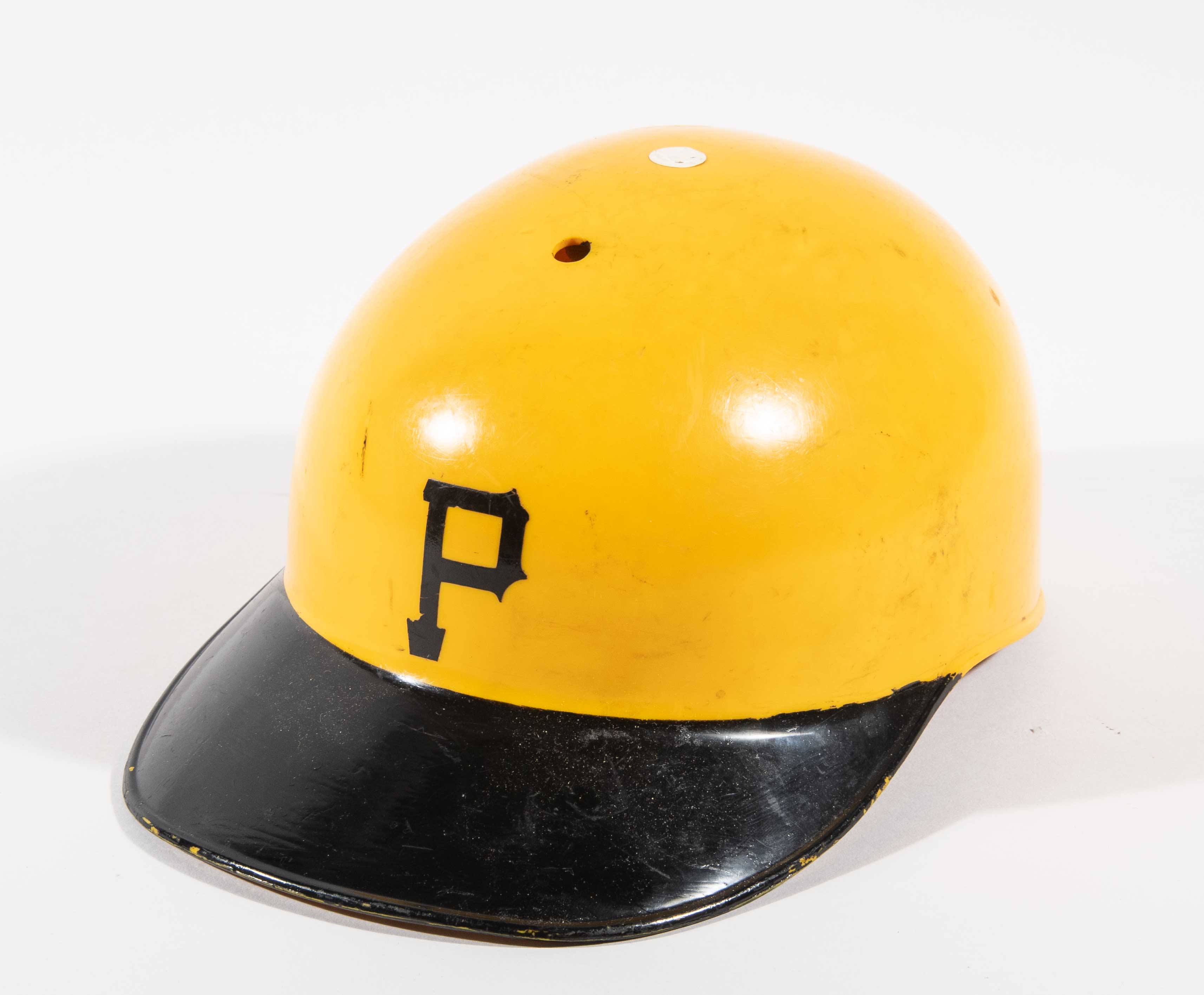 Description:Steve Nicosia Pittsburgh Pirates 1979 World Series attributed professional model helmet (EX). Yellow and black helmet with the "P" team logo on front has player number "16" written on the back in vintage marker. "Pro-Celd" and "American Baseball Cap" decals are inside with the later noting size (7). Strong use is evident throughout. Nicosia was famously engaged in an onfield fracas with an overzealous fan just after the Pirates won the 1979 World Series. He lost his helmet in the scuffle and it was picked up by our consignor who was on field at the time. Includes letter of provenance and LOA from Hunt Auctions: EX