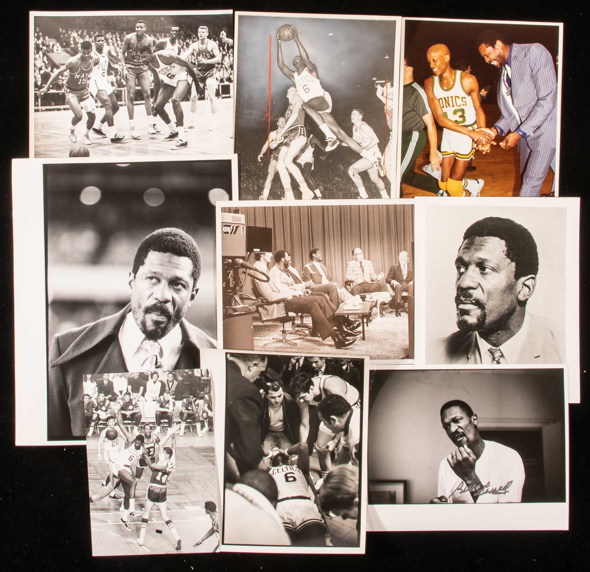 Description:Lot of (29) vintage Bill Russell related photographs with one autographed c.1950-80s. Varied grouping to include Celtics game action images, street clothes promotional photos; coaching images, series of 1960s images from Russell's injury on court, and post career images. The lot includes one 8"x10" b&w image signed by Russell in silver sharpie. Sizes range from 4"x5" to 11"x14" with most around 8"x10". Excellent breakdown value. Includes auction LOA from JSA (autograph) and certificate of provenance from Bill Russell: Range EX-NM/MT