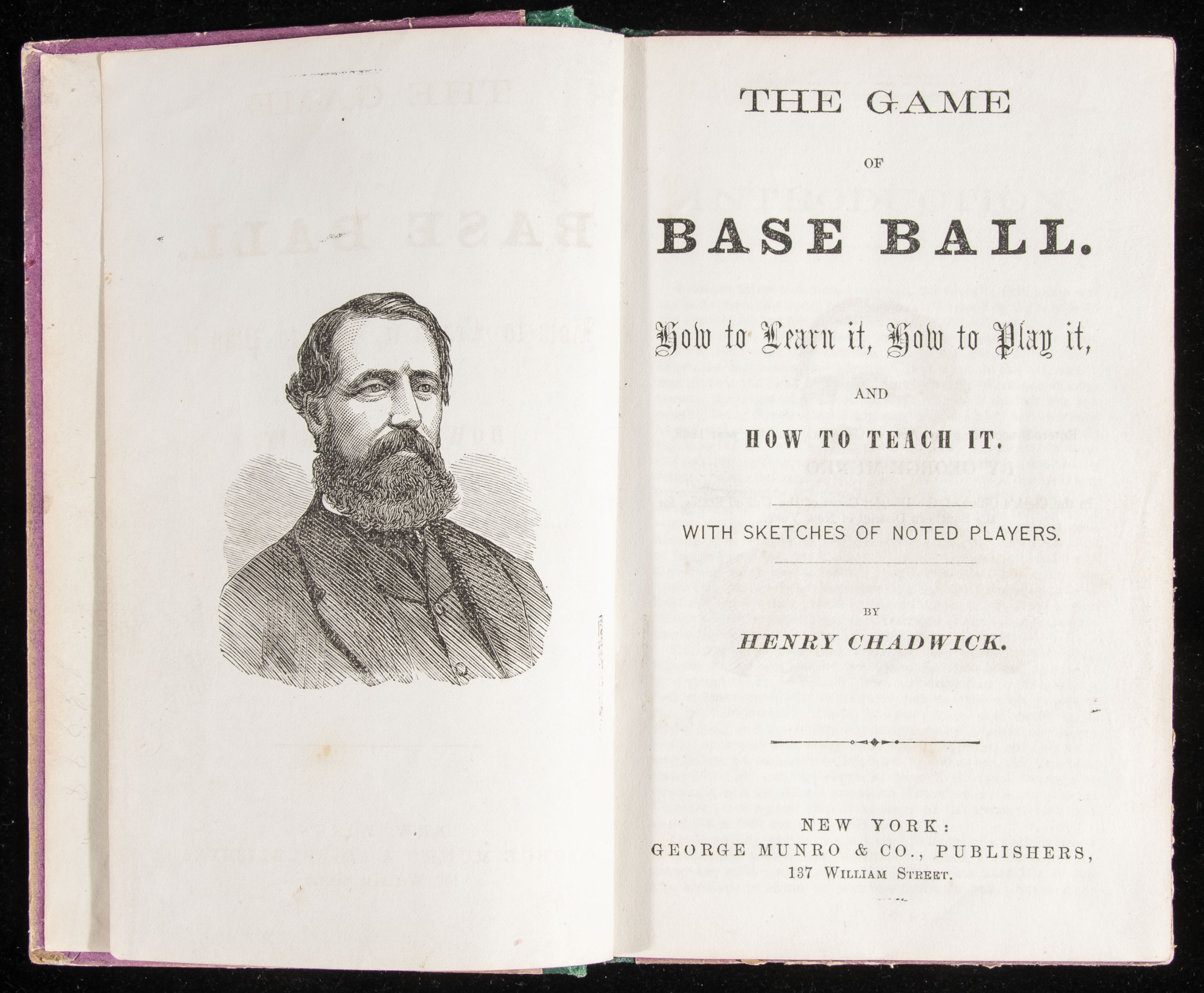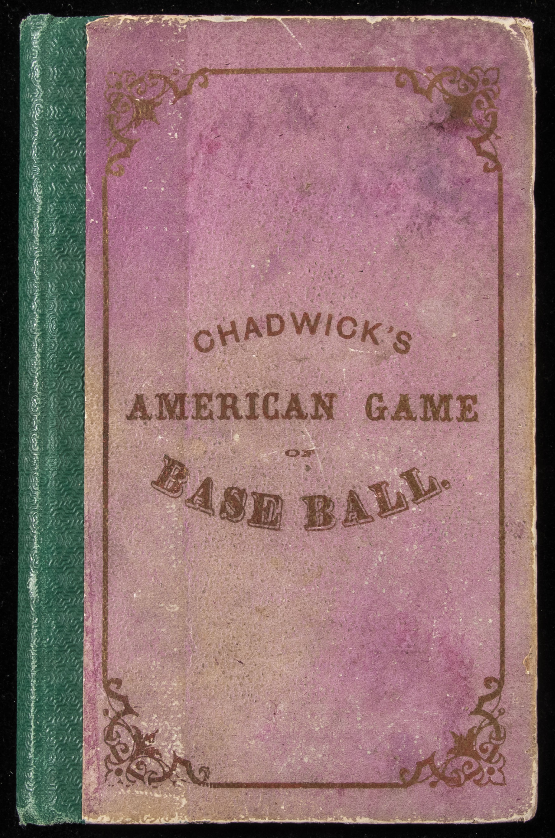 Description:Important 1869 "Chadwick's American Game of Base Ball" book. First edition of the seminal work by Henry Chadwick which in full is titled, "The Game of Base Ball. How to Learn it, How to Play it, and How to Teach it. With Sketches of Noted Players." Among the earliest authoritative books written on the game it is widely considered to be the most important written in the 19th Century. Notably rare with an estimated (20) to (25) copies or so that have survived and very seldom offered. In fine overall condition with some minor wear to covers. All pages are intact (though some do have some creasing at corners) and firmly affixed however there is a slight separation of the contents from the cover at front (all pages are attached to each other at bound edge and the contents are largely attached to the covers however the book need be handled with some care). Includes a custom gilt lettered slipcover/case: GD-VG
