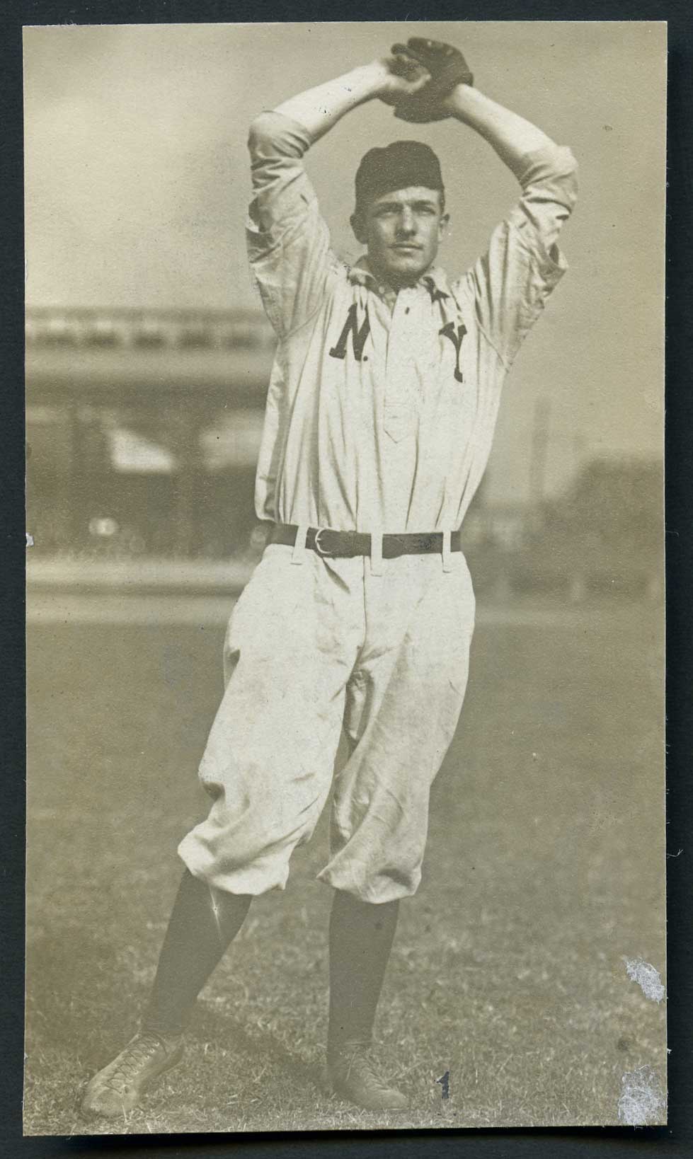 Description:Outstanding Christy Mathewson photograph c.1904-05. Sepia toned 2.25"x4" photo displaying a hint of light wear with a small amount of surface residue to one lower front corner. Mounting residue throughout the back with some faint handwritten identifiers: VG/EX