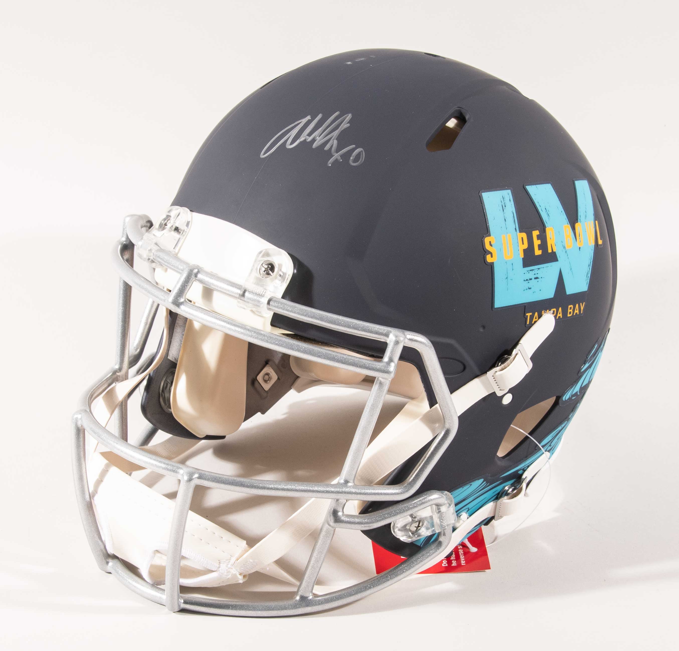 Description:The Weekend autographed Super Bowl LV Pro Line helmet. Riddell full size Speed Classic helmet signed by The Weekend in silver marker. Signature rates 9 out of 10. Very minor scuff mark on the crown of the helmet. Includes NFL Auction COA from PSA/DNA, with matching serial #ed sticker on the helmet: NM