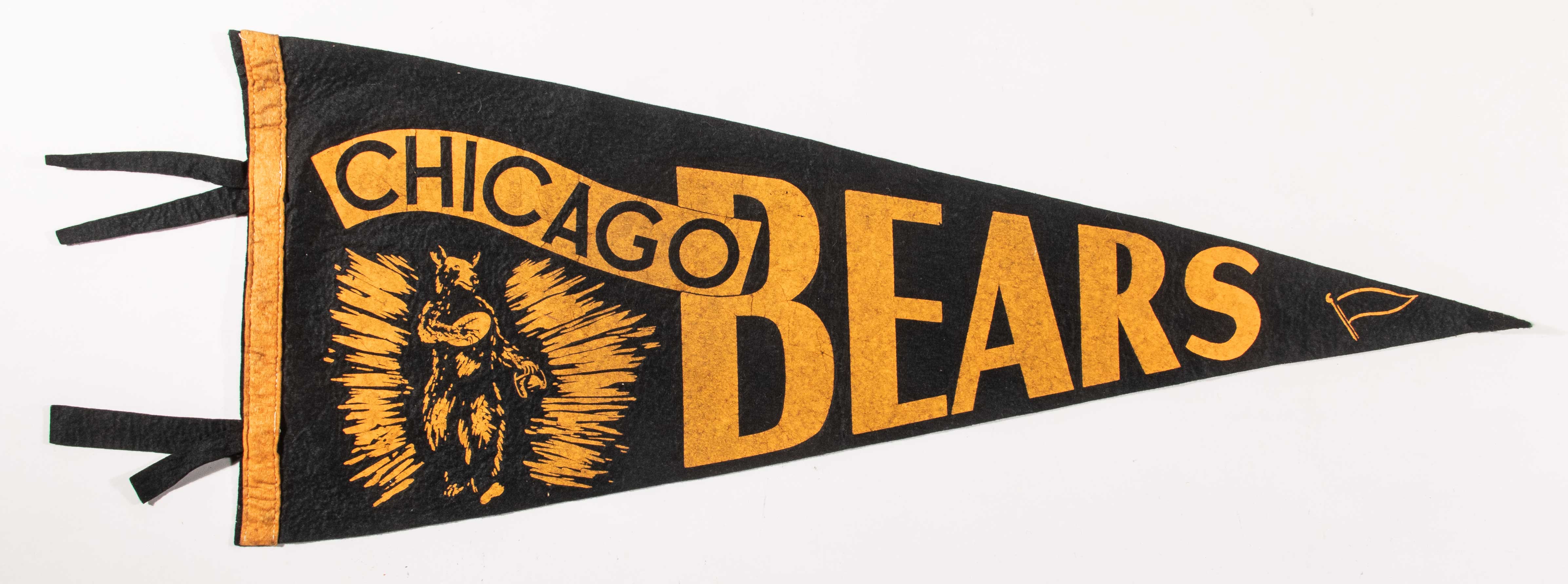 Chicago Bears pennant c.1930s. Appealing and unusual style done in black felt (28.5" long) with screened on graphic and titling. In fine overall condition with a hint of minor discoloration and touch of light wear: EX-EX/MT