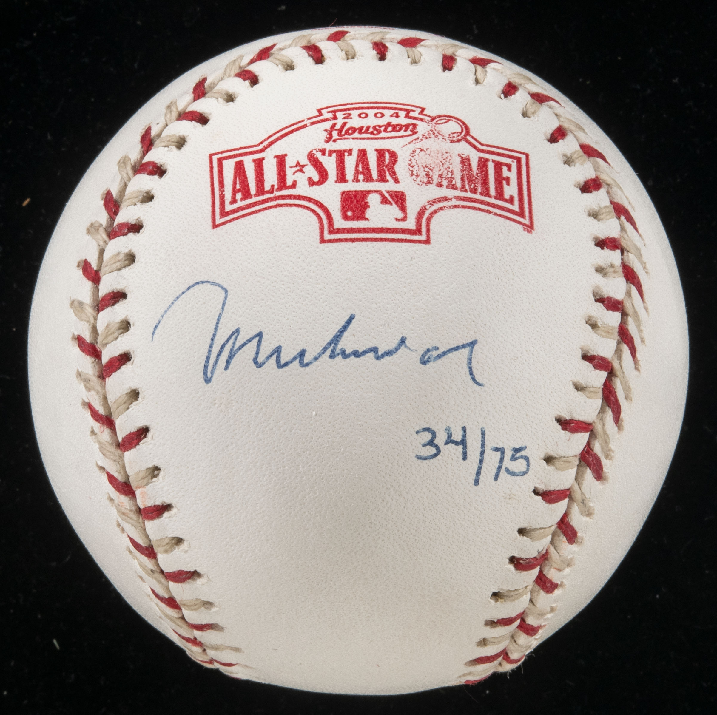 Description:Muhammad Ali limited edition single signed baseball. Rawlings Official 2004 All-Star Game logo baseball has been signed "Muhammad Ali" on the side panel in ink rating 8 out of 10. Slight imperfection to stampings and a few scattered spots of toning. Hand numbered "34/75" and includes COA from Steiner Sports and there is an OnlineAuthentics authentication sticker affixed: EX-EX/MT