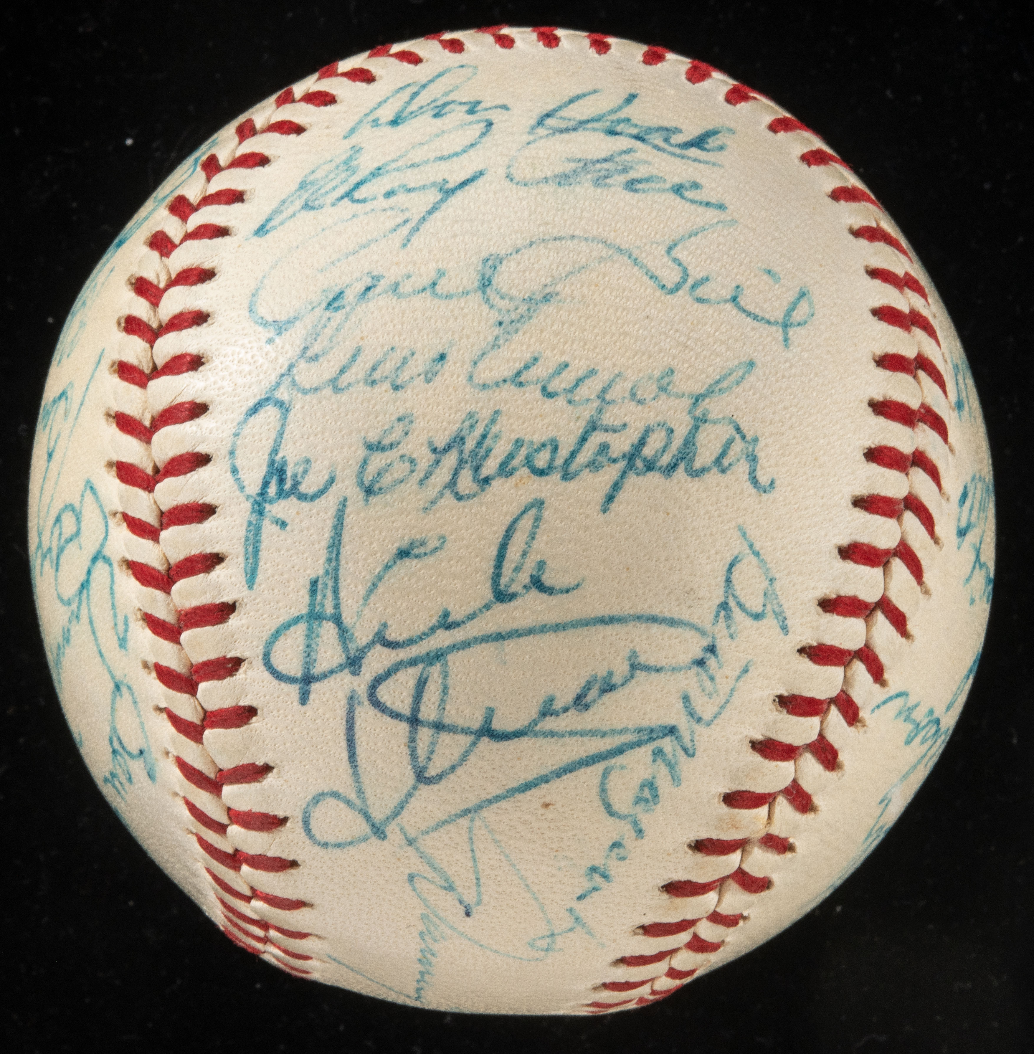 Description:1960 Pittsburgh Pirates team autographed baseball (World Champions). Light cream color Giles NL ball signed by (27) members of the World Champion Pirates to include Clemente, Mazeroski, Haddix, Hoak, Law, Friend, Groat, Skinner, and Face. Murtaugh and Burgess are clubhouse signed. Signatures range between 7-9 out of ten in very high condition grade (With exception of Law rating 5). Includes full LOA from JSA: Ball: EX/MT-NM, Signatures: Range NM-NM/MT (With note to Law)