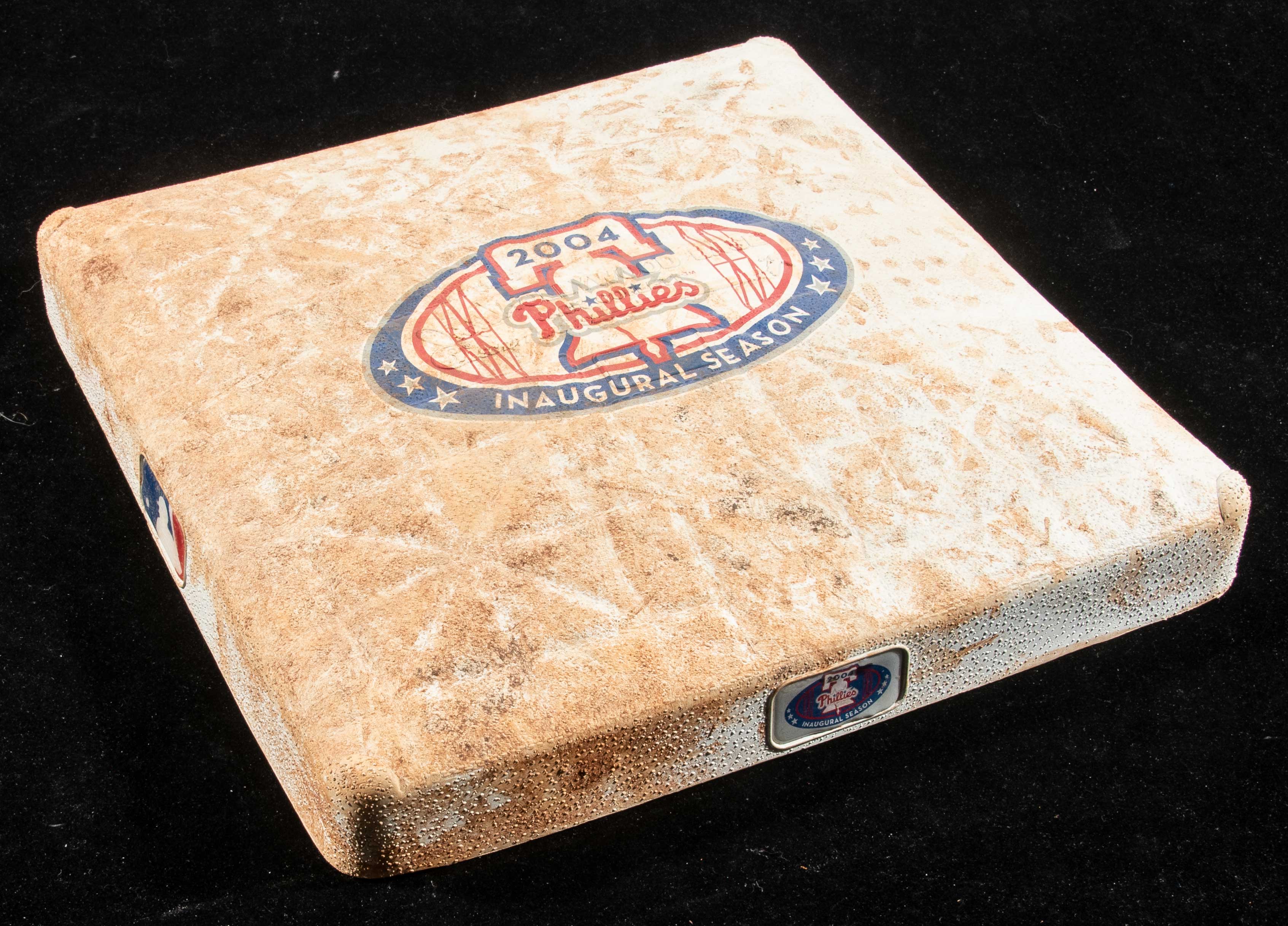 Description:Philadelphia Phillies 2004 Citizens Bank Park inaugural season game used base. The base was used during the 7/5/2004 game between the New York Mets at Philadelphia Phillies. MLB Authenticated serial #MT00432617 hologram sticker is on the base: EX