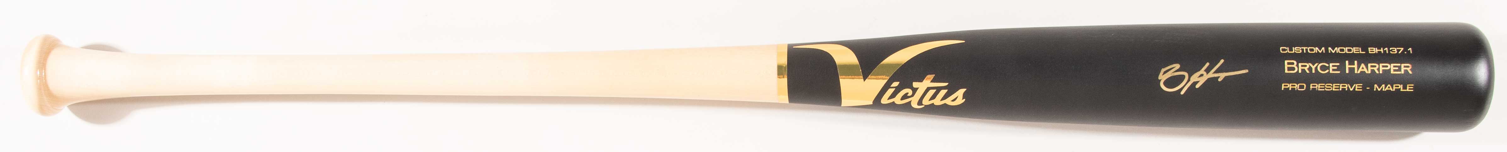 Description:Bryce Harper autographed game model baseball bat. 34" Victus BH137.1 Bryce Harper custom model bat signed by Harper in gold marker. Signature rates 9 out of 10. MLB Authenticated serial #ed hologram sticker is on the bat. Remains in unused condition: NM