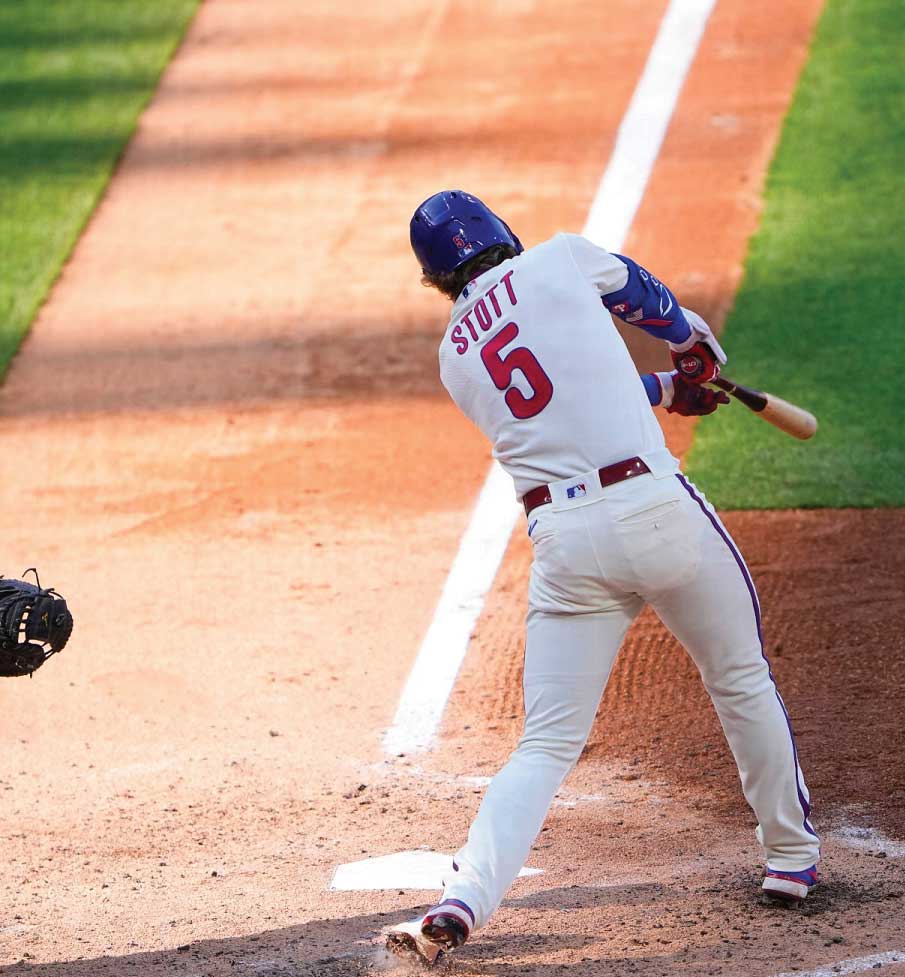 Description:Bryson Stott autographed 2022 rookie year Philadelphia Phillies game worn jersey (NL Champions)(MLB Authentication). Nike MLB Authentic Collection size 44 Phillies #5 Bryson Stott jersey worn during their September 11th game against the Nationals. Stott signed the jersey in black marker. Signature rates 8 out of 10. MLB Authenticated serial #YP321361 hologram sticker is on the jersey. Small black stain on the back, and some fabric pilling indicating that the jersey may have been worn in previous games. Very desirable rookie season jersey from Stott who has developed into one of the premier second baseman in the National League: EX