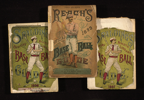 Lot of (3) early baseball publications: 1897 Reach Base Ball guide, 1896 Spalding Base Ball guide, 1897 Spalding Base Ball guide.