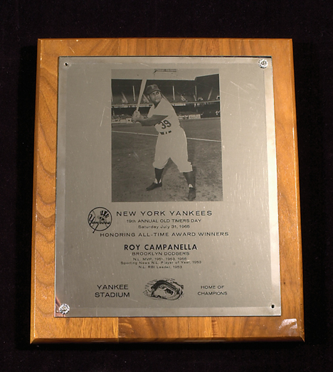 Roy Campanella New York Yankees Old Timers Day award plaque.