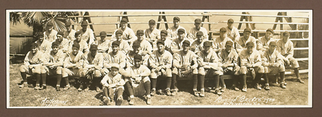 1928 Boston Braves team panoramic photograph. Sepia tone 7"x21" matted and framed image of the team taken at spring training in St. Petersburg, FL.
