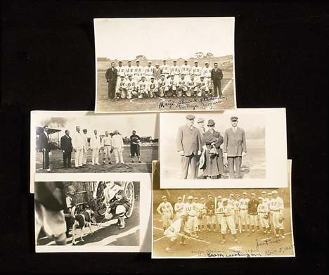 Collection of (11) vintage baseball related photographs c.1915-20s. Majority have relation to several U.S. All-Star team Oriental Tours with subjects incl. Meiji Stadium, Tokyo; Babe Ruth in a boat c.