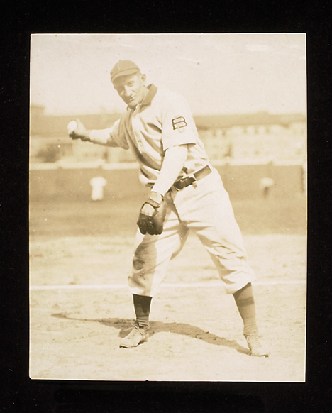 Rube Waddell photograph c.1920s. Black and white 8"x10" image mounted on vintage linen backing picturing Waddell in St. Louis Browns uniform c.1