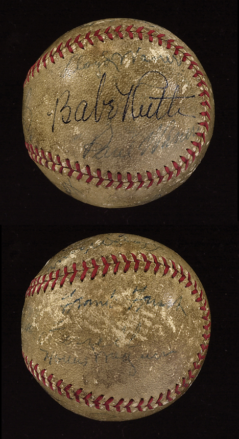 Vintage HOF'er auto. baseball incl. Babe Ruth. Toned ball with illegible stampings signed by (13) players incl. Ruth, P.W