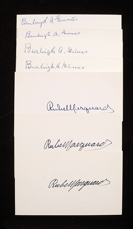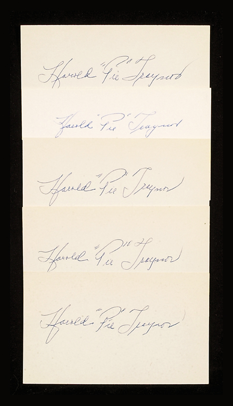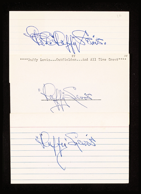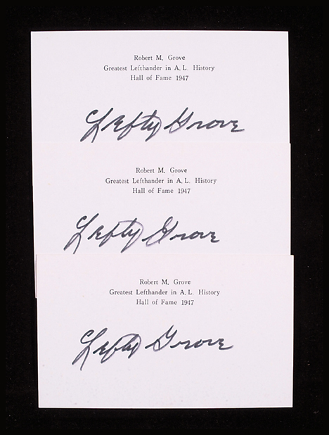 Lot of baseball HOF'er auto. 3"x5" index cards to include: (49) Rollie Fingers (incl. several early career), (38) Gaylord Perry (incl. several early career), (36) Jim Palmer (incl. several early playing career with two dated rookie season examples), (5) Juan Marichal, and (32) Fergie Jenkins.