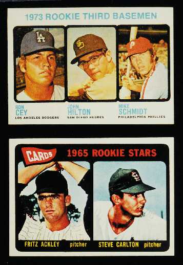 Lot of two baseball star cards: 1973 Topps Mike Schmidt #615: EX-EX/MT and 1965 Topps Steve Carlton #477: EX-MT