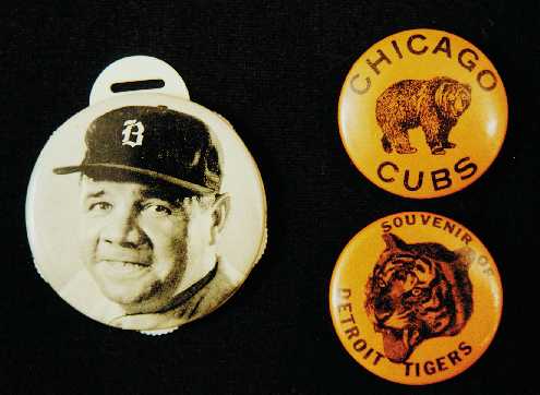 Pair of baseball souvenir pins c.1930-40's. Each is 11/4" diam. incl. Cubs and Tigers: NM