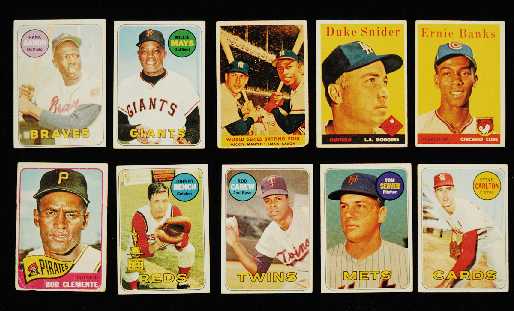 Lot of (68) vintage baseball cards c.1958-1960. Majority are Topps incl. some major stars such as Mays/Snider, Gibson, Mathews, Kaline along with some high number cards: Range VG-NM