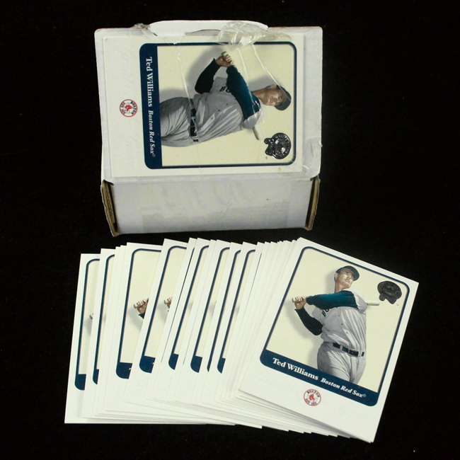 Description:Lot of (25) Ted Williams 2001 Fleer Greats of the Game baseball cards (NM-MT). Includes (25) 2001 Fleer Greats of the Game #124 Ted Williams cards as sent to Ted Williams and/or the Williams family from Fleer. Includes certificate of provenance from Claudia Williams: NM-MT