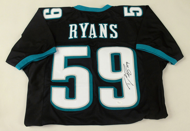 Description:DeMeco Ryans signed jersey, JSA (NM). Size L #59 DeMeco Ryans jersey signed by Ryans in black marker with "59" inscription. Signature rates 9 out of 10. JSA serial #ed sticker is affixed: NM
