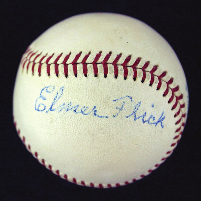 Description:Elmer Flick single signed baseball (Overall EX/MT). Reach J.Cronin Official American League baseball has been signed on the side panel, "Elmer Flick." Blue ink signature rates 7/8 out of 10. Ball displays an even cream coloration with a touch of light scattered surface wear. Seldom offered and desirable Hall of Fame single signed baseball: Overall EX/MT ($1,000-$2,000)
