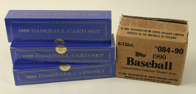 Description:Lot of (3) 1989 Topps Tiffany and (6) 1990 Topps Tiffany Traded factory sets (NM/MT-MT). Each set remains factory sealed. It is presumed that the cards inside remain in high grade condition: NM/MT-MT