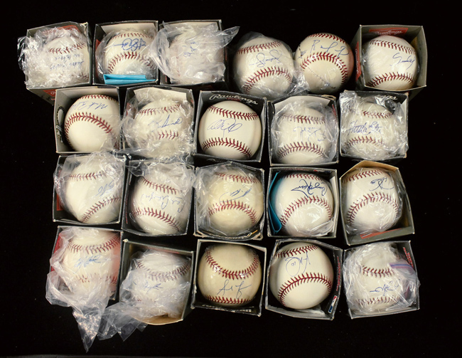Description:Lot of (21) single-signed baseballs (EX-NM). All are signed on official NL, AL, or MLB balls. Includes Huston Street, Gio Gonzalez, Pablo Sandoval, Jered Weaver, Rafael Furcal, Jake Peavy, Adam Wainwright, Carl Crawford, Dexter Fowler, Austin Jackson, B.J. Upton, Rickie Weeks, Vernon Wells, Aramis Ramirez, Mark Buehrle, Chad Billingsley, Colby Rasmus, Francisco Liriano, (2) Andruw Jones, and Anibal Sanchez with "No Hitter 9-6-06" inscription. Signatures rate 6/7 to 10 (avg 8/9) out of 10. Some show various degrees of toning: EX-NM