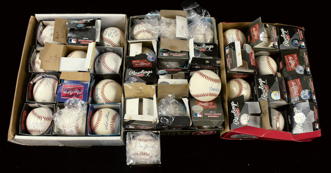 Description:Lot of (38) single-signed baseballs (EX-NM). Nearly all are signed on official NL, AL, or MLB balls. Includes Eric Lindros, Raul Mondesi, Cliff Floyd, Steve Avery, Ryan Klesko, Hank Blalock, Gregg Jefferies, Jason Jennings, Matt Williams, Francisco Liriano, Mike Pelfrey, Homer Bailey, Cameron Maybin, Fausto Carmona, Jeremy Hermida, Grady Sizemore, Jarrod Saltalamacchia, and others. Signatures rate 6 to 10 (avg 8/9) out of 10. Some show various degrees of toning: EX-NM