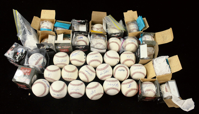 Description:Lot of (38) single and multi-signed baseballs (EX-NM). Nearly all are signed on official NL, AL, or MLB balls. Includes 2004 Sarasota Red Sox team signed ball with Hanley Ramirez, Jon Lester, Jon Papelbon, and others; and 2004 Ashville Tourists team signed ball. Single-signed balls include Luke Hochevar, Jeff Francoeur, Cameron Maybin, Alex Rios, Matt LaPorta, Carlos Carrasco, Alcides Escobar, Brian Matusz, Justin Smoak, Brett Myers, Jeremy Hermida, Nick Johnson, and others. Signatures rate 6 to 10 (avg 8/9) out of 10. Some show various degrees of toning: EX-NM