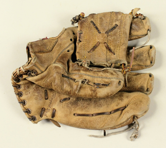 Lew Burdette store model glove c.1950s. Rawlings RHT model glove with Burdette facsimile signature inside. Moderate to heavy use: GD-VG