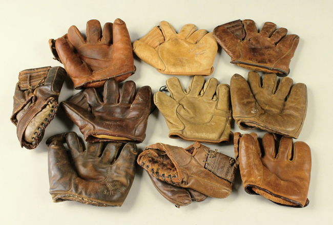 Description:Lot of (10) vintage baseball and softball gloves c.1950-70s. Varied grouping including Gus Bell model by D&M, Wilson Bill Tuttle model, Spalding Kaiser model, and MacGregor/Goldsmith softabll glove: Range PR-VG/EX