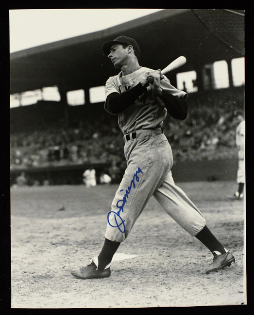 Description:Joe DiMaggio signed 11"x14" photograph (NM-MT) Uncommon black and white image signed in blue sharpie "Joe DiMaggio" rating 9/10 out of 10. Printed on high quality thick stock photographers paper with Brearley stamping on back and comes with letter of provenance from the Brearley Family. Hint of light wear at edges would not be visible when framed for display: NM-MT