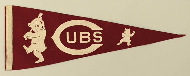 Description:Chicago Cubs pennant c.1930s (EX) Red felt 3/4 sized pennant (23.75" long) remaining well preserved overall with a touch of light wear and pinholes at corners from mounting: EX