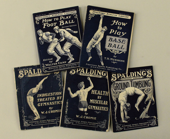 Description:Lot of (5) vintage Spalding guides from 1899-1907 (VG-EX/MT). Incl. 1899 "Ground Tumbling" by Henry Walter Worth (EX/MT); 1903 "How to Play Base Ball" by T.H. Murnane (EX); 1903 "How To Play Foot Ball" edited by Walter Camp (EX-EX/MT); 1907 "Health By Muscular Gymnastics" by W.J. Cromie (VG/EX back cover chips); and 1907 "Indigestion Treated By Gymnastics" by W.J. Cromie (VG-VG/EX). Range: VG-EX/MT