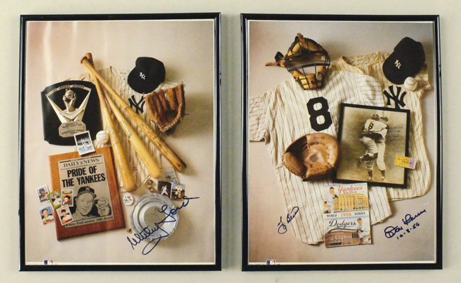 Description:Whitey Ford signed collage photograph, and Yogi Berra & Don Larsen dual-signed collage photo (NM). Incl. 11.5"x14.5" framed photo signed by Whitey Ford; and 11.5"x14.5" framed photo signed by Yogi Berra and by Don Larsen with "10-8-56" inscription. Signatures rate 8 (Ford) to 10 out of 10. Due to framing, complete conditions are unknown, but minor waviness is slightly visible: NM overall appearance