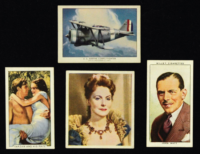 Description:Lot of (4) tobacco/cigarette card sets from 1934-1942 (VG-NM). Incl. 1934-35 Wills "Radio Celebrities" 50-card set; 1935 Gallaher "Shots From Famous Films" 48-card set; 1938 Godfrey Phillips "Characters Come To Life" 36-card set; and (38) 1939-42 Airplane cards by Wings Cigarettes. Various conditions throughout the lot. Most appear to average EX overall. Range: VG-NM