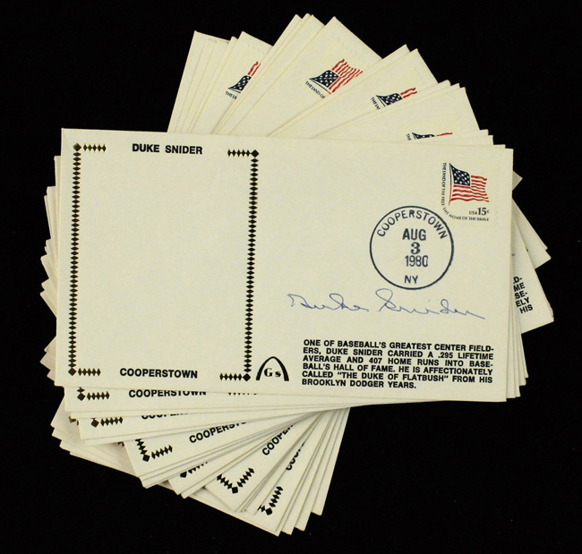 Description:Lot of (20) Duke Snider signed first day covers (NM-NM/MT). Incl. (20) 1980 Duke Snider FDC envelopes all signed by Snider in blue ink (cachets are not on envelopes). Signatures rate 8/9 to 10 out of 10: NM-NM/MT