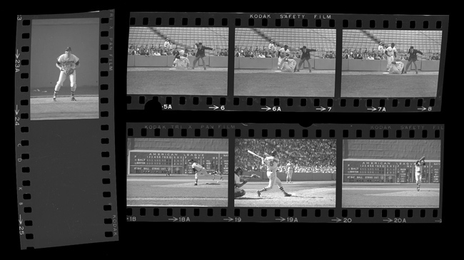 Description:Brooks Robinson c.1969-70, acetate and 35mm negatives (see description) (EX/MT) Vintage photographic negative having little to no evident wear offers a defining image of Robinson. Approx. 2.5"x2.5"; Total of (3) 35mm film strips with (1) having sole image of Robinson fielding and the other two having Robinson in what appear to be a total of (4) images (of 6 total). Includes letter of provenance from the Brearley family: EX/MT