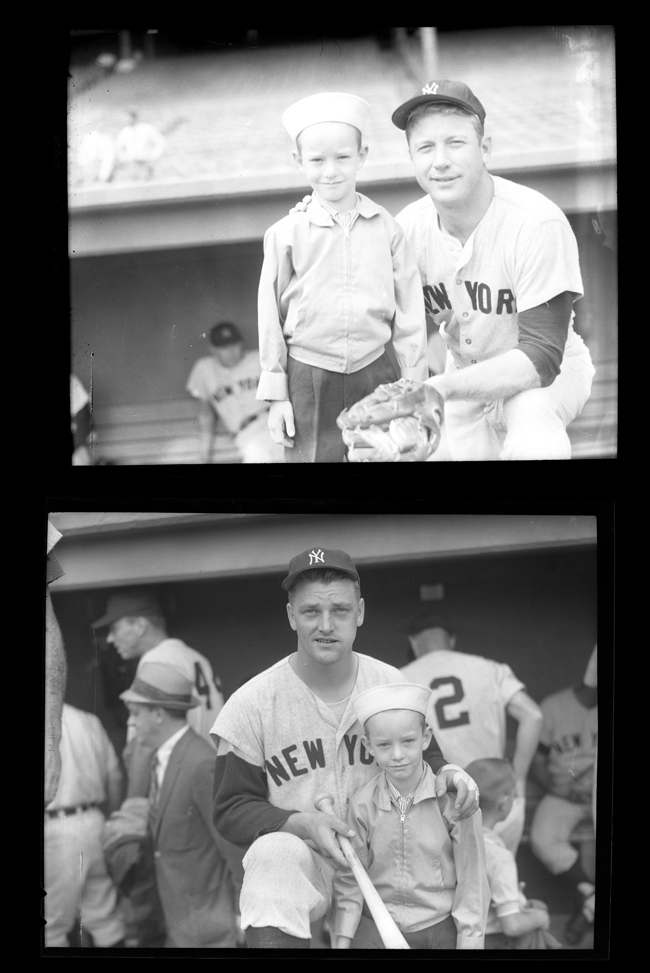 Description:Mickey Mantle and Roger Maris posed with young fan c.1963, lot of (2) acetate negatives (EX/MT) Vintage photographic negatives having little to no evident wear showing Mantle and Maris at the height of their popularity. Approx. 4"x5". Includes letter of provenance from the Brearley family: EX/MT