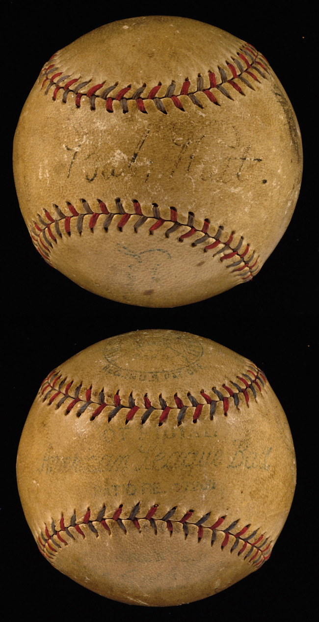 Description:Babe Ruth autographed baseball c.1930s (see description) (VG-EX) Red and blue stitched Reach E.S. Barnard Official American League baseball has been signed across the sweetspot "Babe Ruth" in period fountain pen rating 4-5 out of 10. There is an additional signature on a side panel which can not be deciphered. Ball displays mild general toning with minor scattered wear: VG-EX ($1,500-$2,500)