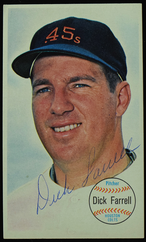 Description:Dick Farrell signed 1964 Topps Giants card #22 (EX/MT) Nice crisp card with just a "touch" to corners has been signed in ink rating 7/8 out of 10: EX/MT