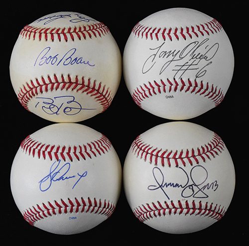 Description:Lot of (24) autographed baseballs (Range VG-NM) All are single signed except for (2) Booke father/son ball to include: Oliva, (2) Chambliss, Gulett, (2) K.Griffey, M.Alou, (3) Tiant, Trillo, DavenportAll are signed on either Minor or Major League baseballs with signatures ranging from 6-9 out of 10: Range VG-NM
