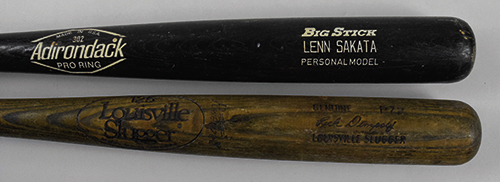 Description:Rick Dempsey and Lenn Sakata professional model baseball bats (VG-EX) Pair of Baltimore Orioles player game bats each showing appropriate use and markings: VG-EX