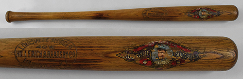 Description:Honus Wagner full sized Louisville Slugger decal bat c.1910s (VG/EX) Louisville Slugger dash-dot-dash model 40W 36" long baseball bat has a Honus Wagner decal applied at barrel end. Decal remains approx. half intact with scattered areas of loss. Bat displays mild use throughout and has an "H" shaped handle crack. A small hole has been made at either end, likely the result of prior display: VG/EX ($750-$1,250)
