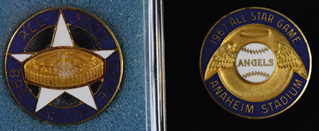 Description:1967 and 1968 All Star Game press pins (EX/MT-NM). Incl. Anaheim 1967 All Star Game press pin (EX/MT), and Houston 1968 All Star Game press pin (NM).