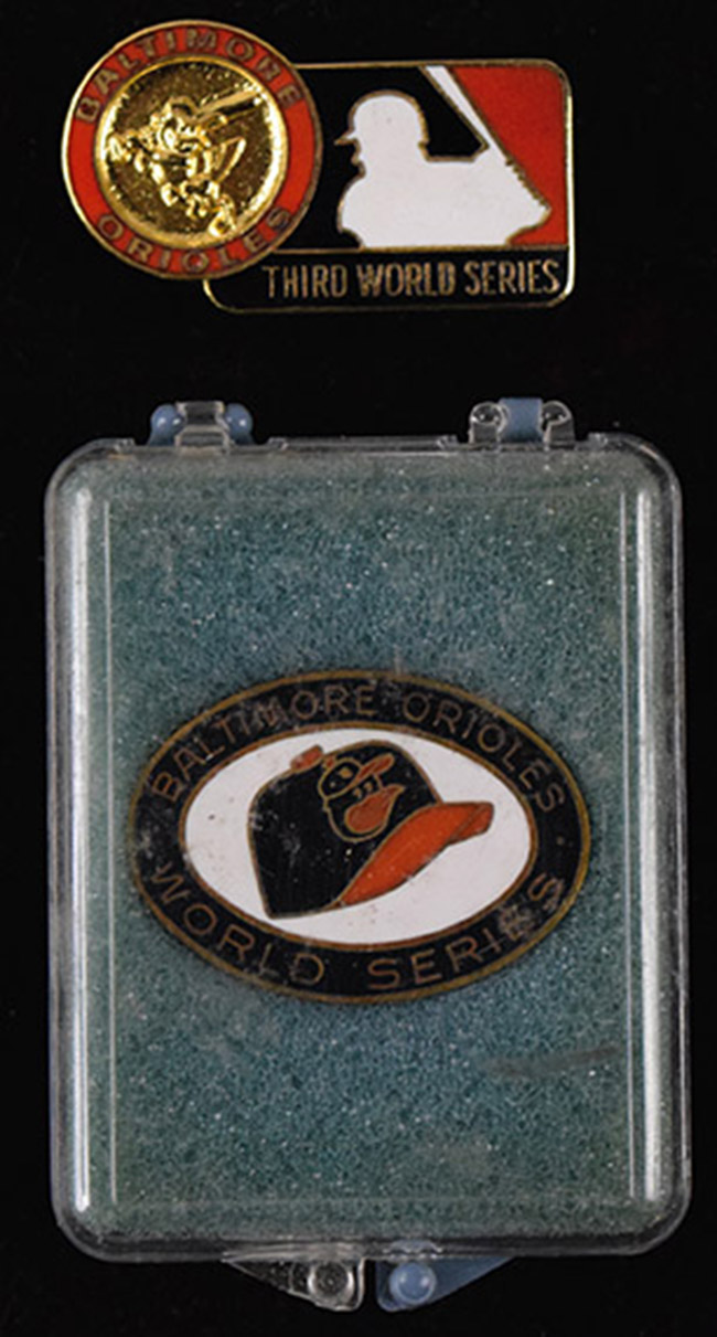Description:Baltimore Orioles 1969 and 1970 World Series press pins (EX/MT-NM/MT). Includes 1969 Orioles press pin (EX/MT-NM), and 1970 Orioles press pin (NM/MT).