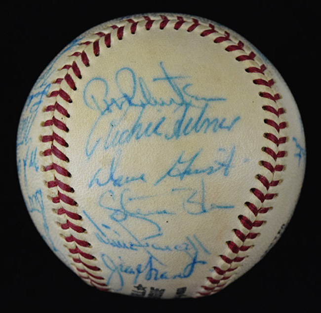 Description:1970 Pittsburgh Pirates team signed baseball (EX/MT). C.Feeney NL ball signed by (25) members of the 1970 NL East champion Pirates including Willie Stargell, Bill Mazeroski, Manny Sanguillen, Bob Robertson, Gene Alley, Richie Hebner, Mateo Alou, Bob Veale, Al Oliver (signed "Scoop"), Dock Ellis, Steve Blass, Dave Giusti, and others (Murtaugh clubhouse signed). Signatures rate 6/7 to 9/10 (avg 8) out of 10. Light, even toning: EX/MT