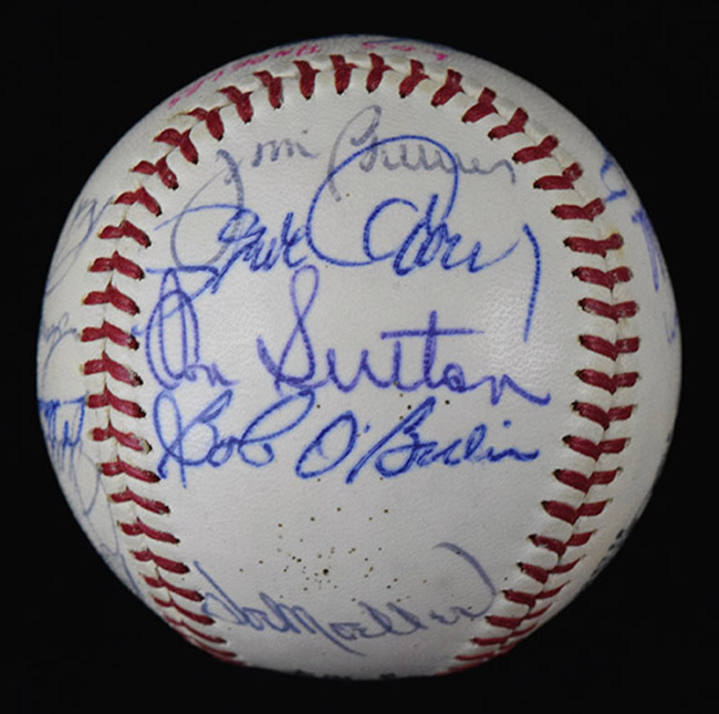 Description:1971 Los Angeles Dodgers team signed baseball (EX/MT). C.Feeney NL ball signed by (21) members of the 1971 Dodgers including Walt Alston, Red Adams, Don Sutton, Duke Sims, Willie Davis, Bill Buckner, Steve Garvey, Al Downing, Claude Osteen, Bill Singer, Jim Brewer, and others. Signatures rate 6/7 to 9/10 (avg 8) out of 10. Areas of surface wear around the Ozark and Russell autographs: EX/MT